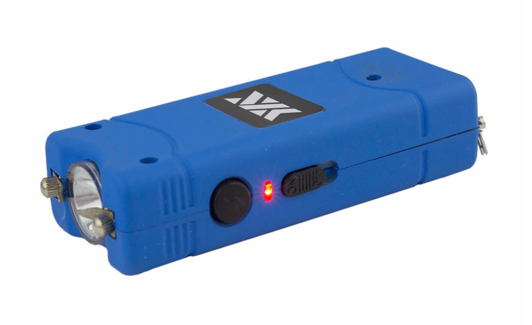 Ultra Mini Stun With LED Light, Holster, KeyRing and Leather Carrying Case included. It is small enough to fit in your pocket but strong enough to scare the attackers. Measures 3.5" x 1.5" x 7/8". Built in LED Bright Flash Light.